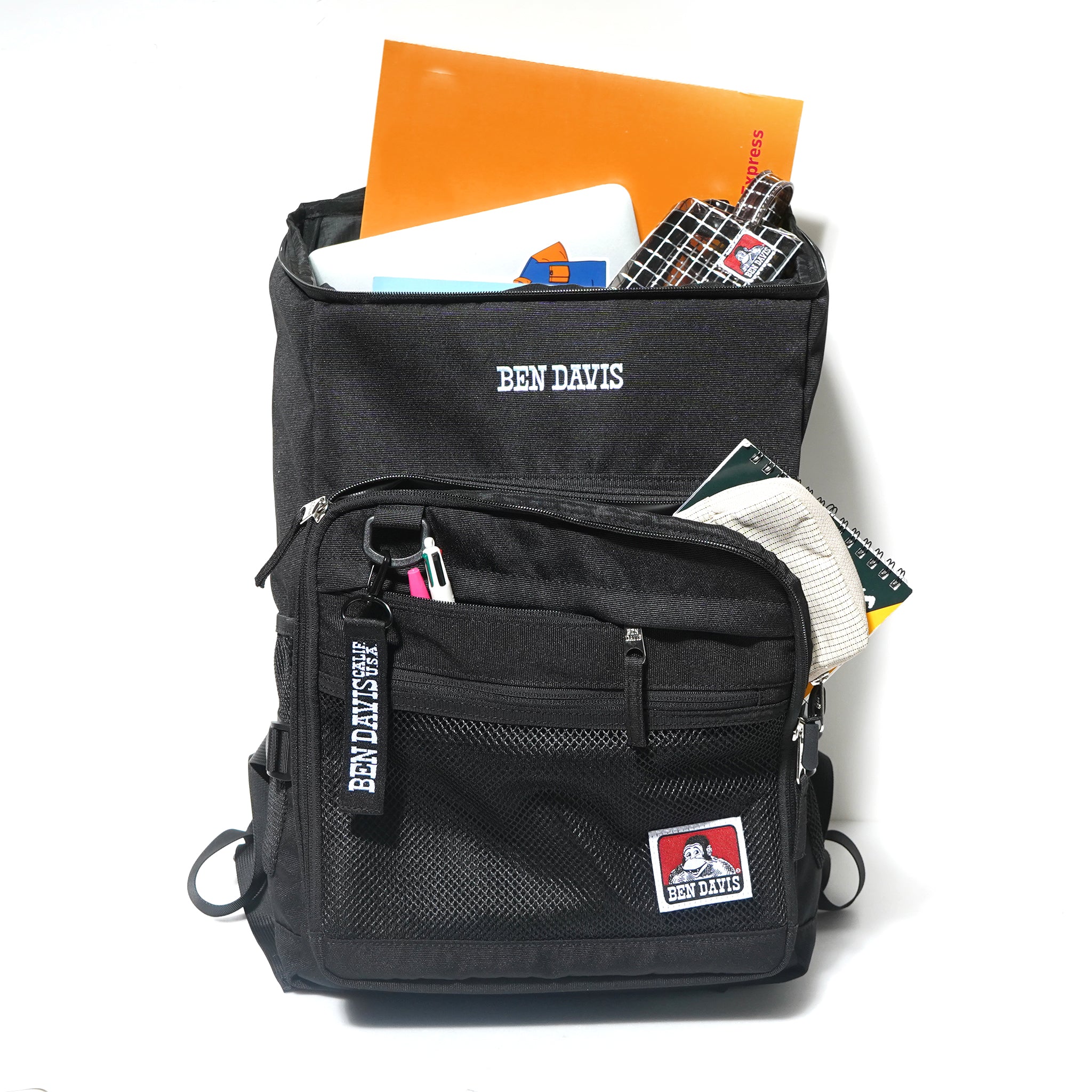 PCやA4書類や雑誌はもちろん、かさばる荷物も無理なく収納できるスクエア設計です。
