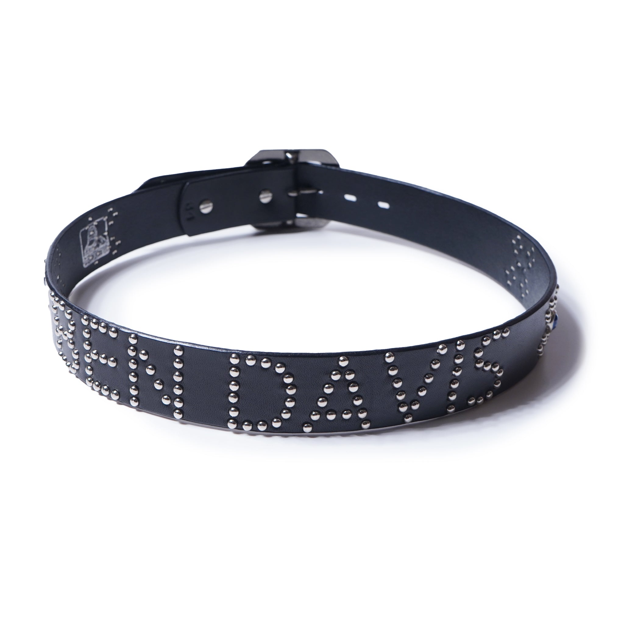 程よく光を反射するスタッズが、無骨さの中に程よいアクセントをプラスします。 ベルト内側にはブランドネームをさりげなく配置。